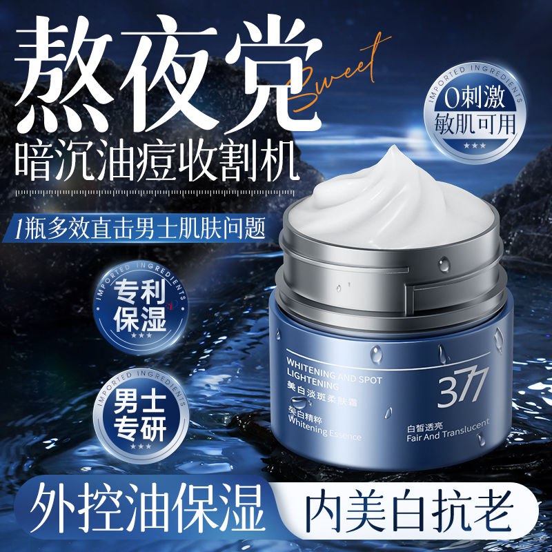 男士377美白面霜补水保湿去黄提亮滋润控油清爽不油腻男韩方五谷