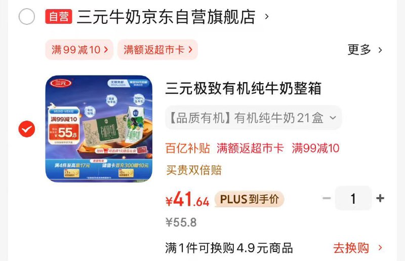 Plus叠礼金凑后41.64元;折1.9/盒