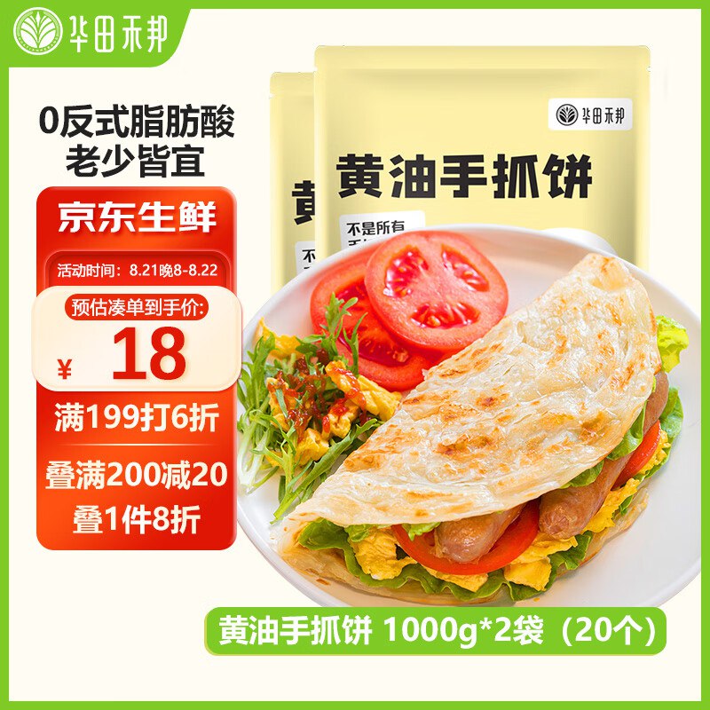 华田禾邦0反式脂肪酸 黄油手抓饼1kg×2袋 20片