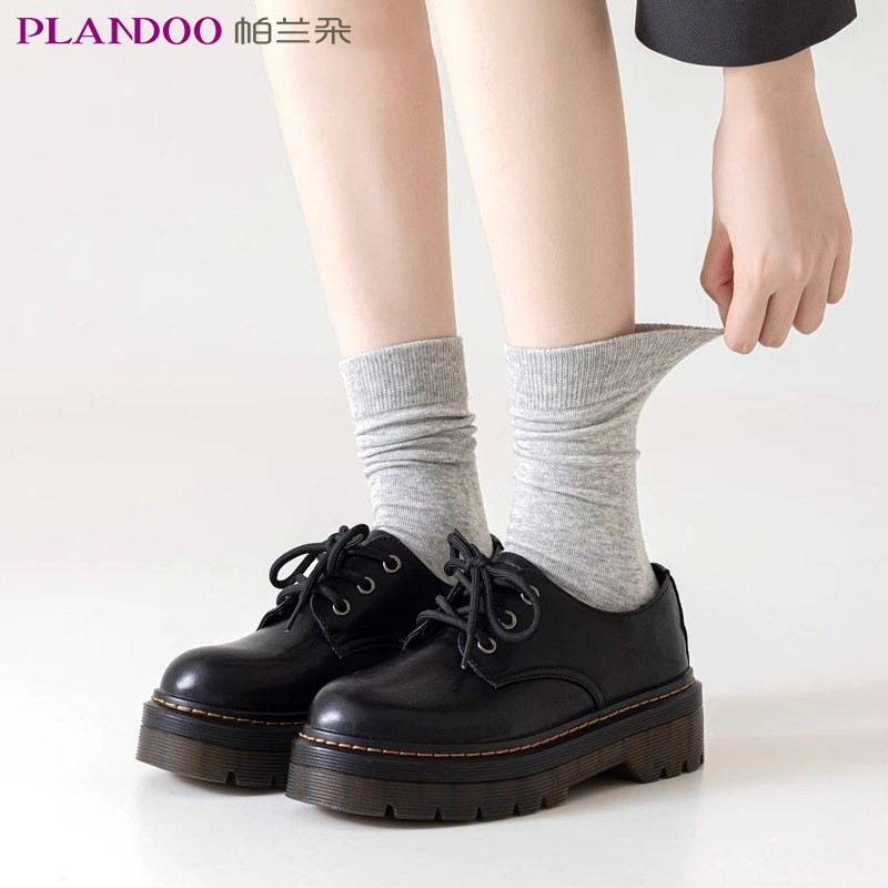 帕兰朵堆堆袜子女网红乐福鞋无骨春秋款纯色月子袜中筒袜白色长袜